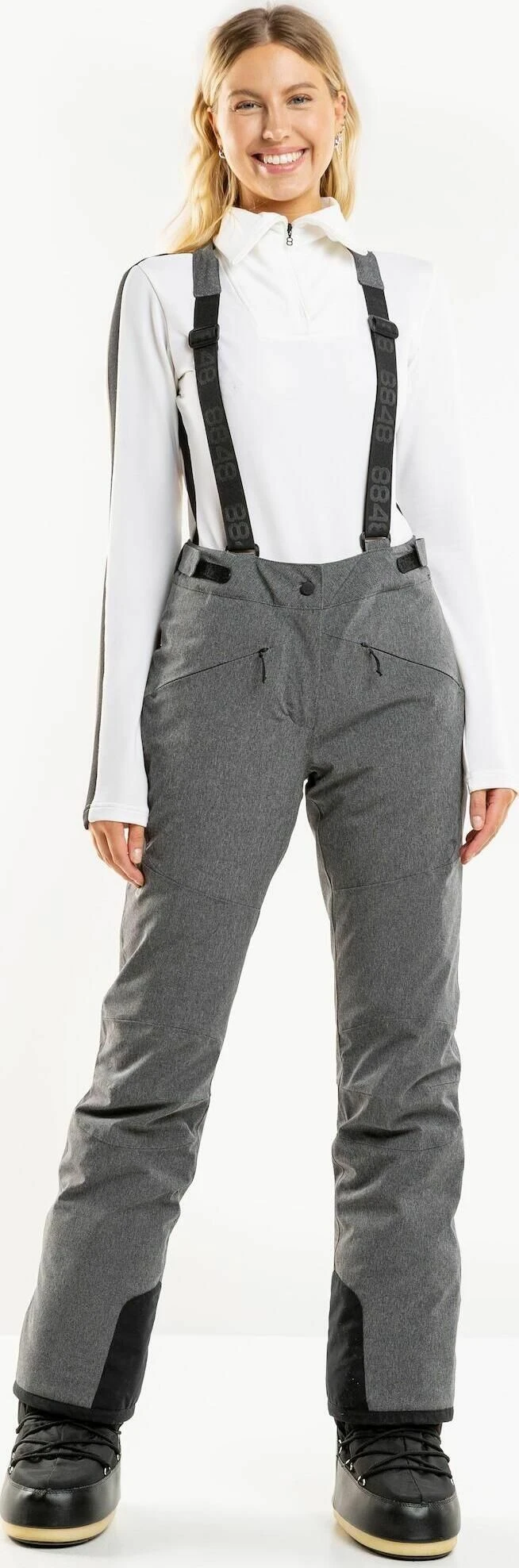 De 8848 ALTITUDE Poppy Pant is de perfecte keuze voor de actieve en fashion-forward dames. Deze zilvergrijze pantalon is ontworpen met een slimme pasvorm en een lange, aansluitende look. De stretch stof zorgt voor een geweldige pasvorm en bewegingsvrijheid.