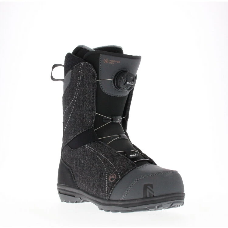 NIDECKER BTS Onyx Boa Coil is een stijlvolle herenschoen in zwart. De schoen is gemaakt van hoogwaardig leer en heeft een Boa Coil-sluiting, vetersluiting en een stevige rubberen zool. Het logo op de neus maakt de schoen af.
